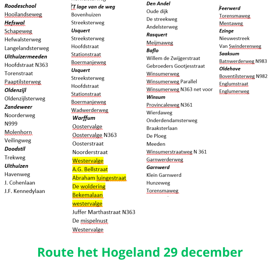 Route het Hogeland, 29 december = VOL